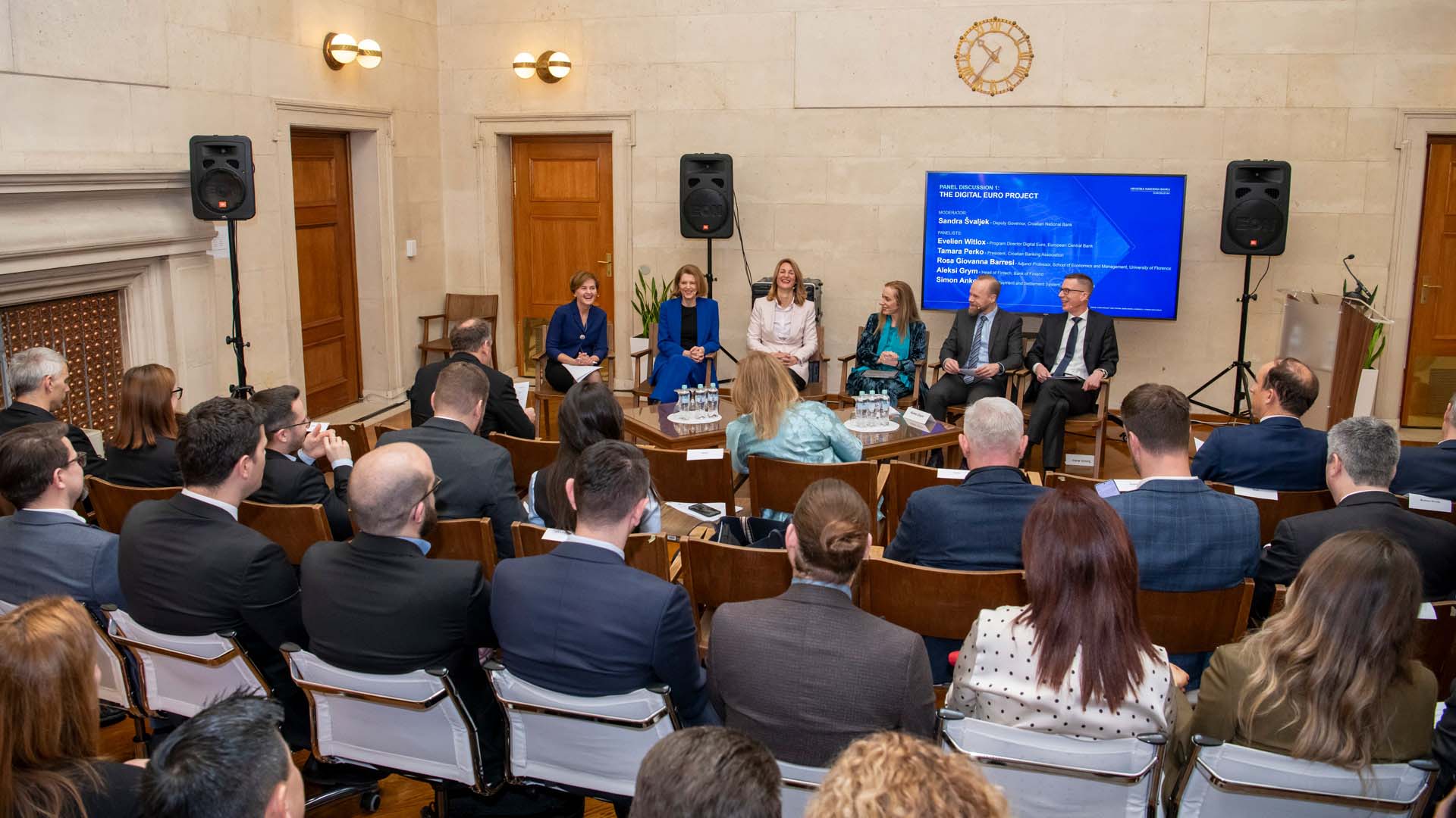 Nakon pozdravnog govora guvernera Vujčića, Evelien Witlox, direktorica programa za digitalni euro u Europskoj središnjoj banci naglasila je da se uporaba gotovine u europodručju smanjuje i istaknula jedinstvenost digitalnog eura kao kombinacije praktičnosti centralnobankarskog novca i prednosti digitalnog plaćanja. "Digitalni euro bio bi općeprihvaćen u cijelom europodručju kao dodatna mogućnost uz plaćanje gotovinom i ostale postojeće metode plaćanja. S digitalnim eurom kao pan-europskim rješenjem pod europskim vodstvom osnažila bi se strateška autonomija Europe, što bi smanjilo našu ovisnost o neeuropskim pružateljima platnih usluga te potaknula inovativnost i tržišno natjecanje u europskom sektoru plaćanja", rekla je Witlox.