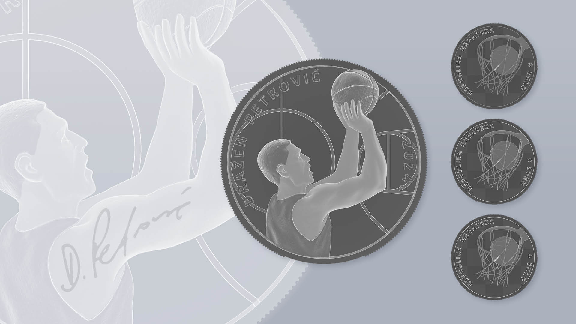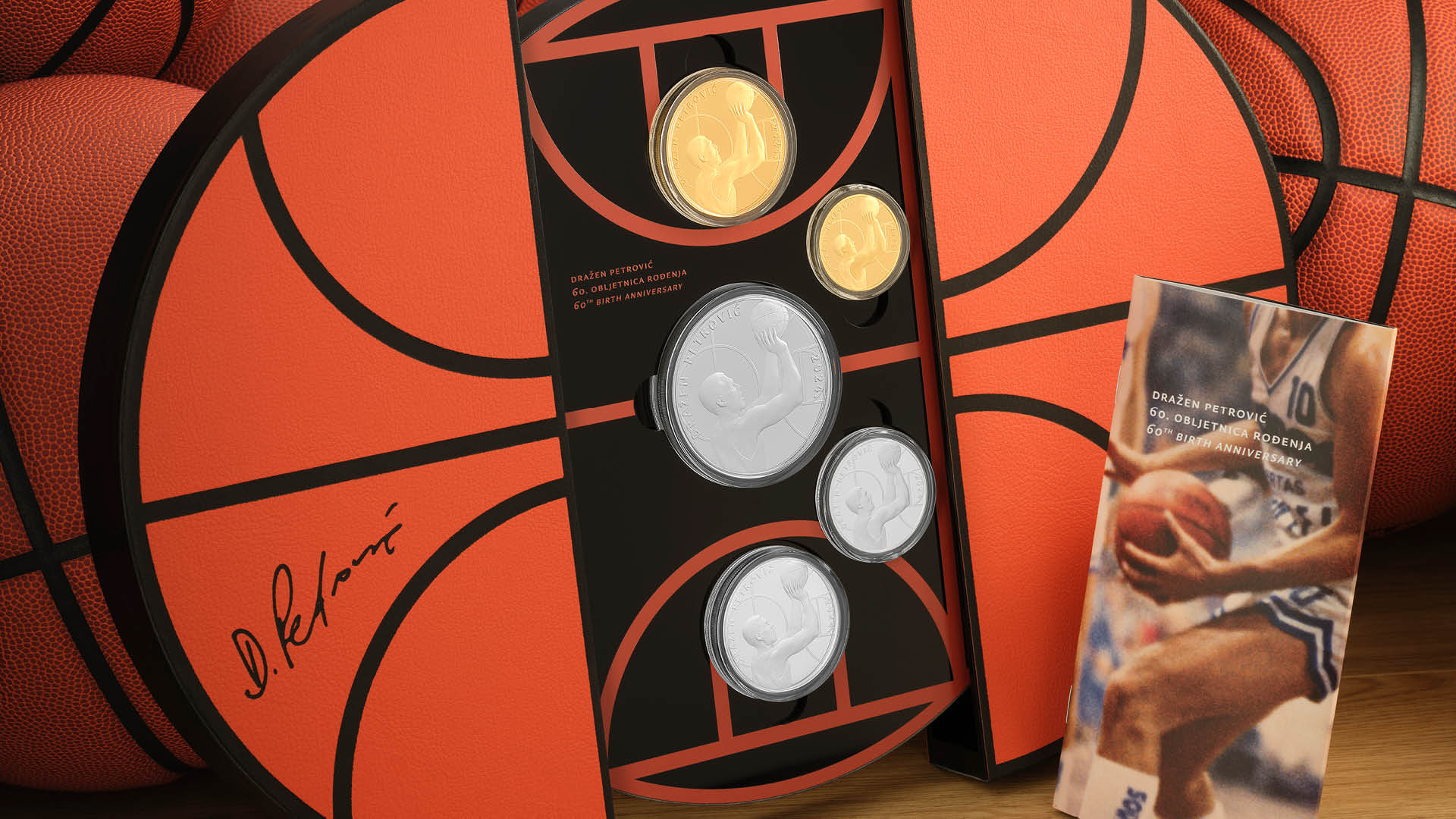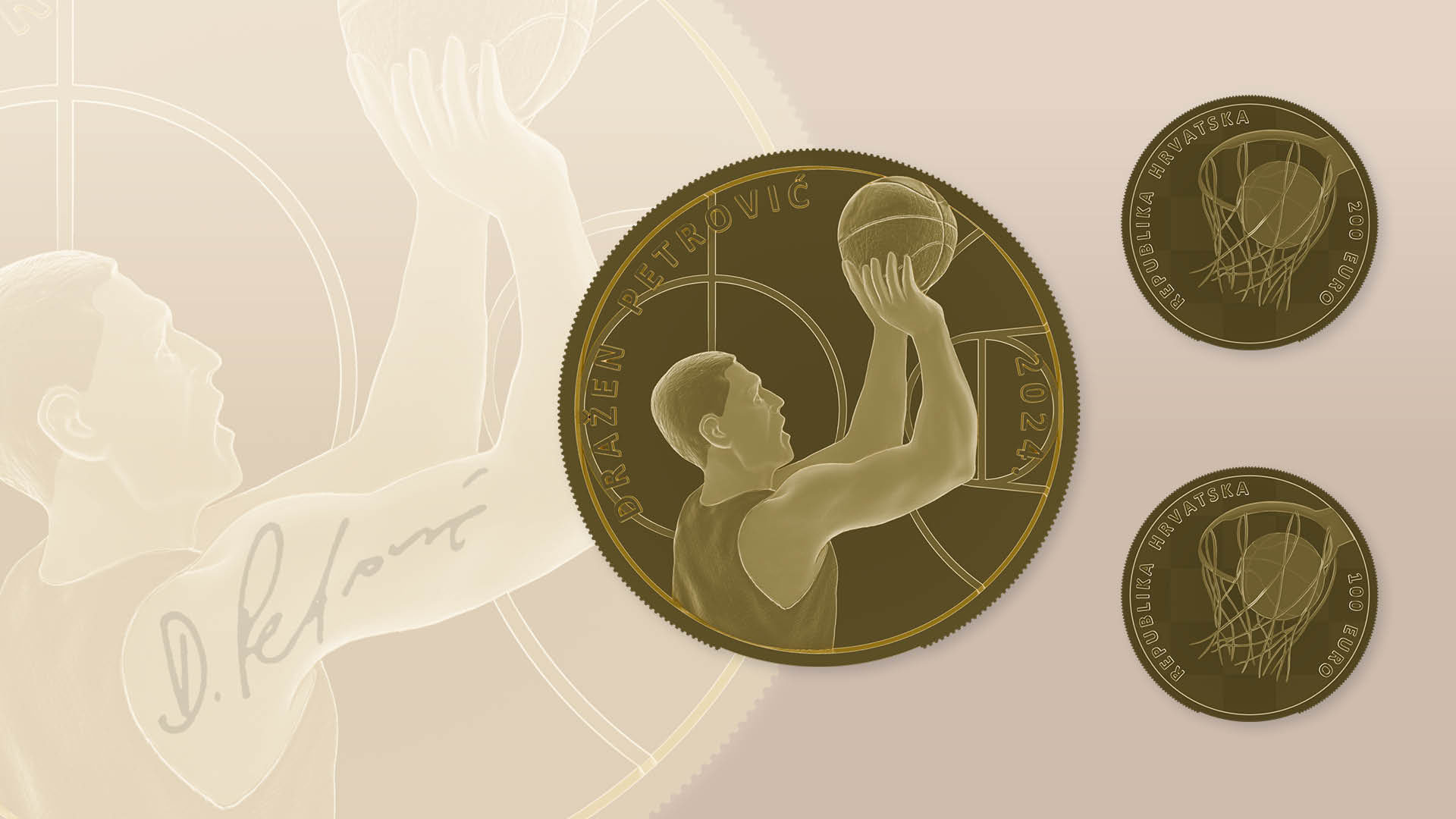 The Croatian National Bank issues "Dražen Petrović" gold and silver numismatic coins with commemorative motifs featuring Croatian basketball player Dražen Petrović who, as one of the greatest Croatian, European and world basketball players, left a very significant mark in world basketball. The gold numismatic coins are issued in the 200 and 100 euro denominations and the silver coins in the 8, 6 and 4 euro denominations.