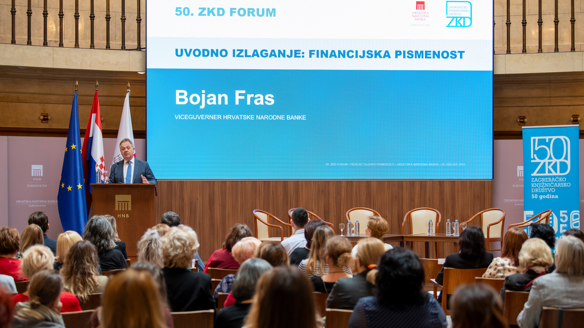 Viceguverner Bojan Fras je u svom izlaganju naglasio da Hrvatska narodna banka kao središnja banka Republike Hrvatske ima kao jedan od ciljeva jačanje financijske pismenosti. "Naš Centar za posjetitelje je putem radionica u 2024. privukao preko 11 tisuća osnovnoškolaca, srednjoškolaca i studenata, a našu Moneterru – Muzej novca HNB-a, koji je otvoren u lipnju prošle godine, do sada je posjetilo skoro 10 tisuća građana. Financijsku edukaciju provodimo kontinuirano tijekom čitave godine, a u sklopu Svjetskog tjedna novca centralni događaj je naša Velika učenička debata. Ostali kanali financijske edukacije HNB-a uključuju redovito sudjelovanje djelatnika HNB-a s temama iz područja financijske edukacije u emisiji ´Dobro jutro, Hrvatska´ na HRT 1 kao i u emisiji ´Financijska abeceda´ na Katoličkom radiju. Informativni i edukativni sadržaji za potrošače dostupni su i na mrežnim stranicama HNB-a, dok su informativne ponude kredita potrošačima te usporedbe bankovnih naknada dostupne putem internet i mobilnih aplikacija HNB-a. Također, financijsku pismenost vidimo i kao dio zaštite potrošača te kontinuirano radimo i na unapređenju pripadajuće regulative, kao i na edukaciji potrošača", naglasio je viceguverner Fras.